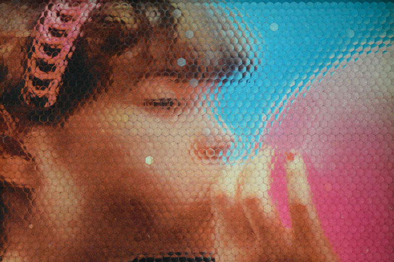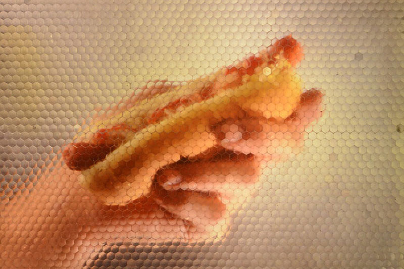 This technology imitates aspects of the image recognition of a dragon fly. The technique involves fragmenting visual reality in order to reconstruct it in a different place. Electronic data is processed and re-integrated photographically under an optical lens array.