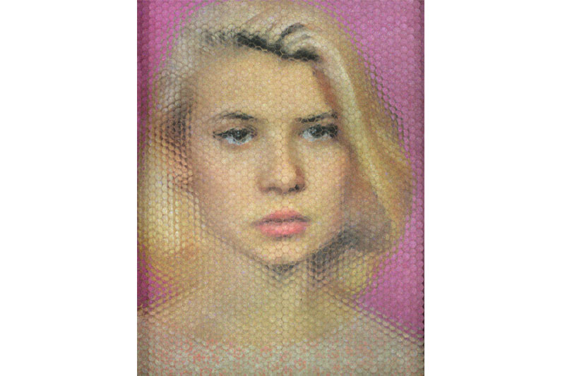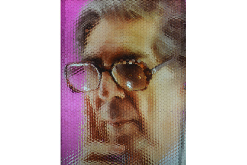 Pushing the Optical Envelope, is at once folksy and hi-tech, unpushily ambitious. Marcel Duchamp and Francis Picabia would have blessed it, I imagine, and Rube Goldberg too. Jones’s childhood preoccupation with animation was followed by a broader exploration of techniques employed to create images, beginning with those that budded between the coming of photography and the birth of the movies, like the zoetrope, the praxinoscope, the kinetoscope, and moving on to later developments, such as lenticular photography and holograms. Most recently Jones has been using Fly’s Eye lenses to make 3-D portraits.